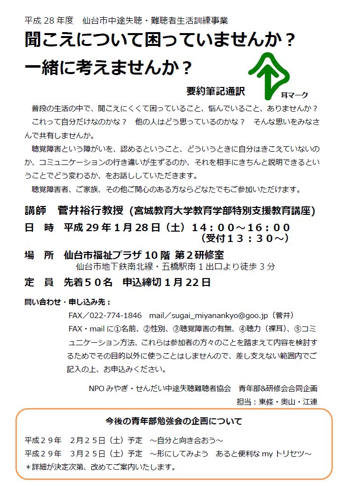 平成29年1月仙台市生活訓練事業として、以下の通り、