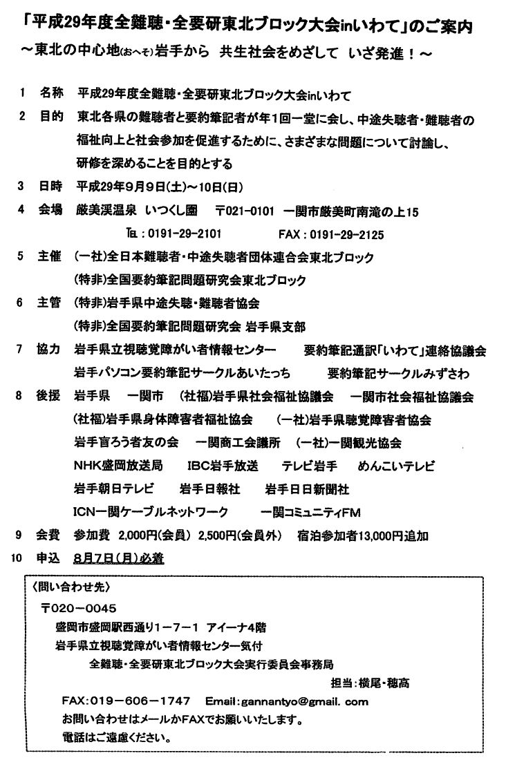 平成29年度全難聴・全要研東北ブロック大会inいわての案内