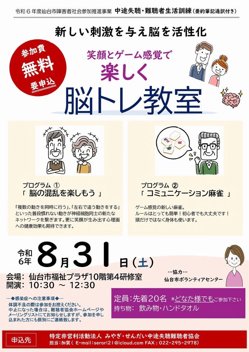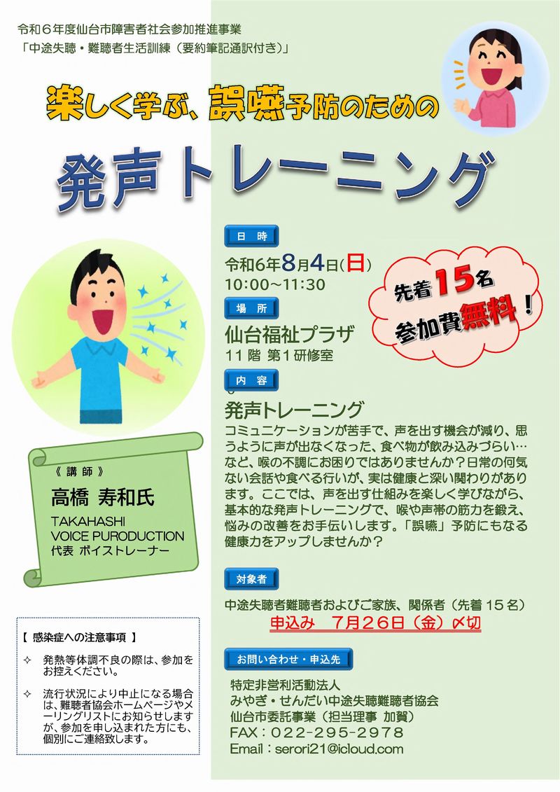 「中途失聴者・難聴者の方の生活訓練(要約筆記通訳つき)」のご案内